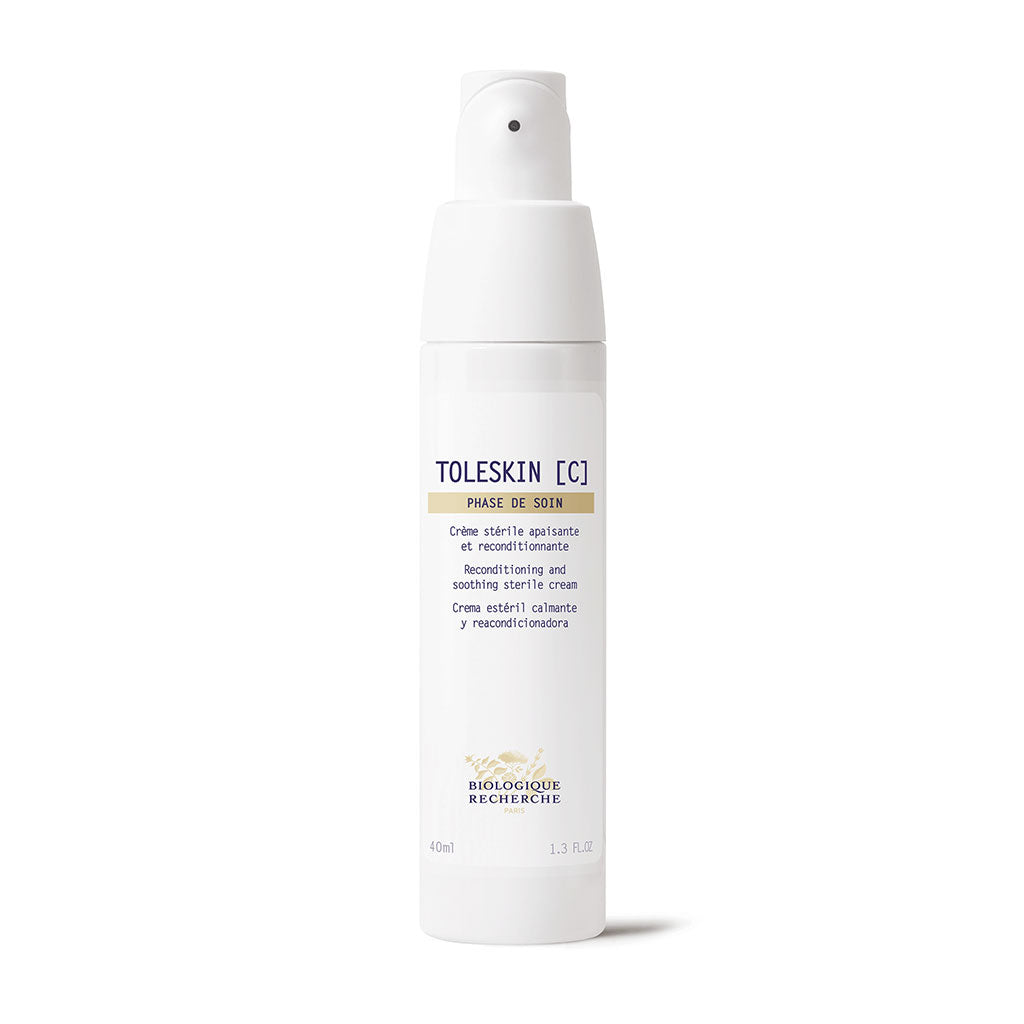 Altamente calmante, Toleskin [C] reduce la sensibilidad de la piel, la sensación de picor y el malestar. Las pieles intolerantes se caracterizan por una alteración de la microbiota cutánea normal y una alteración de la barrera cutánea que puede permitir la entrada de alérgenos y patógenos en la epidermis.